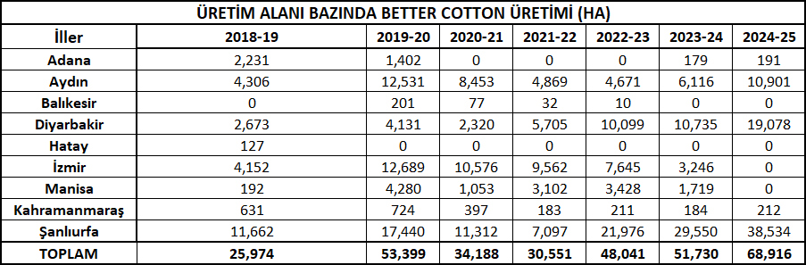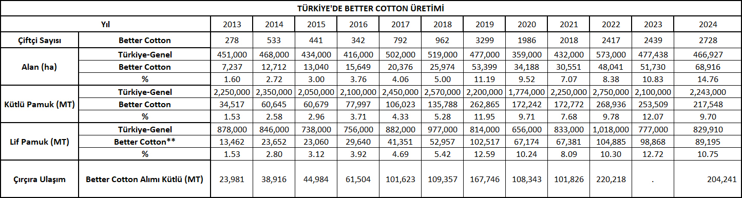 2013-2023 aralıklarını kapsayan yukarıdaki Better Cotton üretim rakamları tablosunu indirmek için tıklayınız.